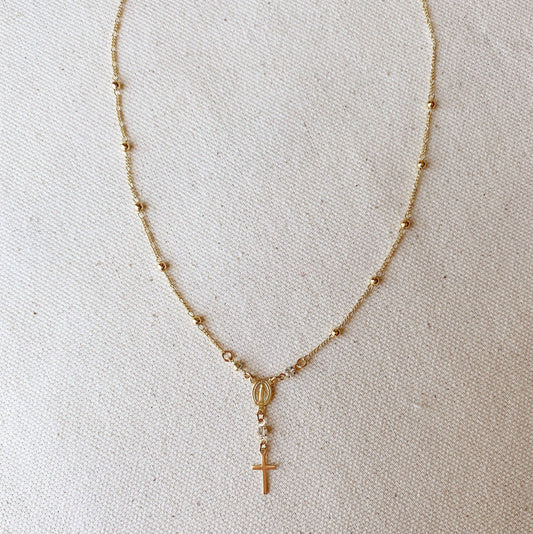 18k Gold Filled Rosary Ball Chain and Small Plain Cross Conf