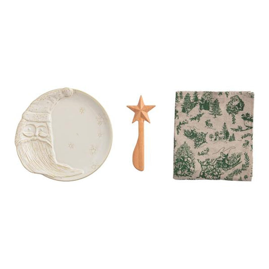 Santa & Moon Christmas Appetizer Plate Set