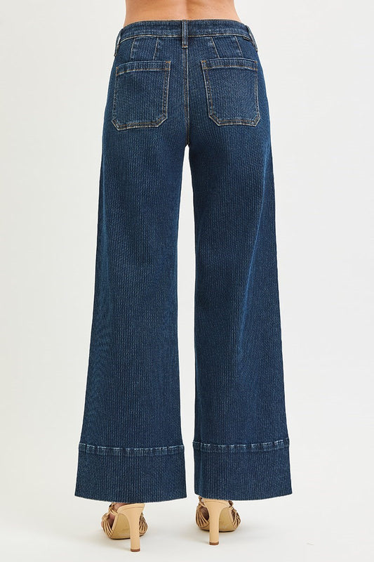 High Rise Pin Tuck Wide Leg Jeans