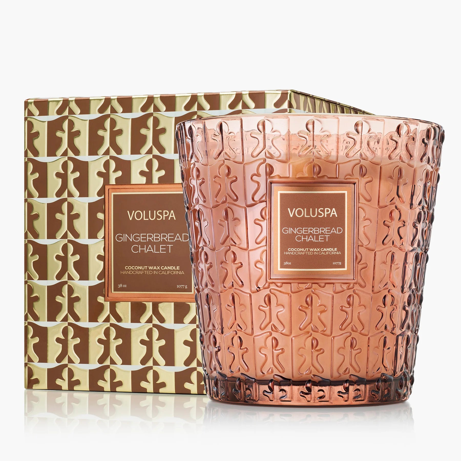 Seek shelter from the cold and step into the Gingerbread Chalet, where the fires burning, drinks are serving and notes of nostalgia and the holidays fill the air. An ambiance enveloped in sugar-dusted ginger, nestled upon layers of cinnamon sticks, crushed clove and smooth tonka bean. Allow its magical essence to fill the air, sprinkling notes of glowing comfort and delight. Consider this your invitation to check into Voluspa's Gingerbread Chalet.
