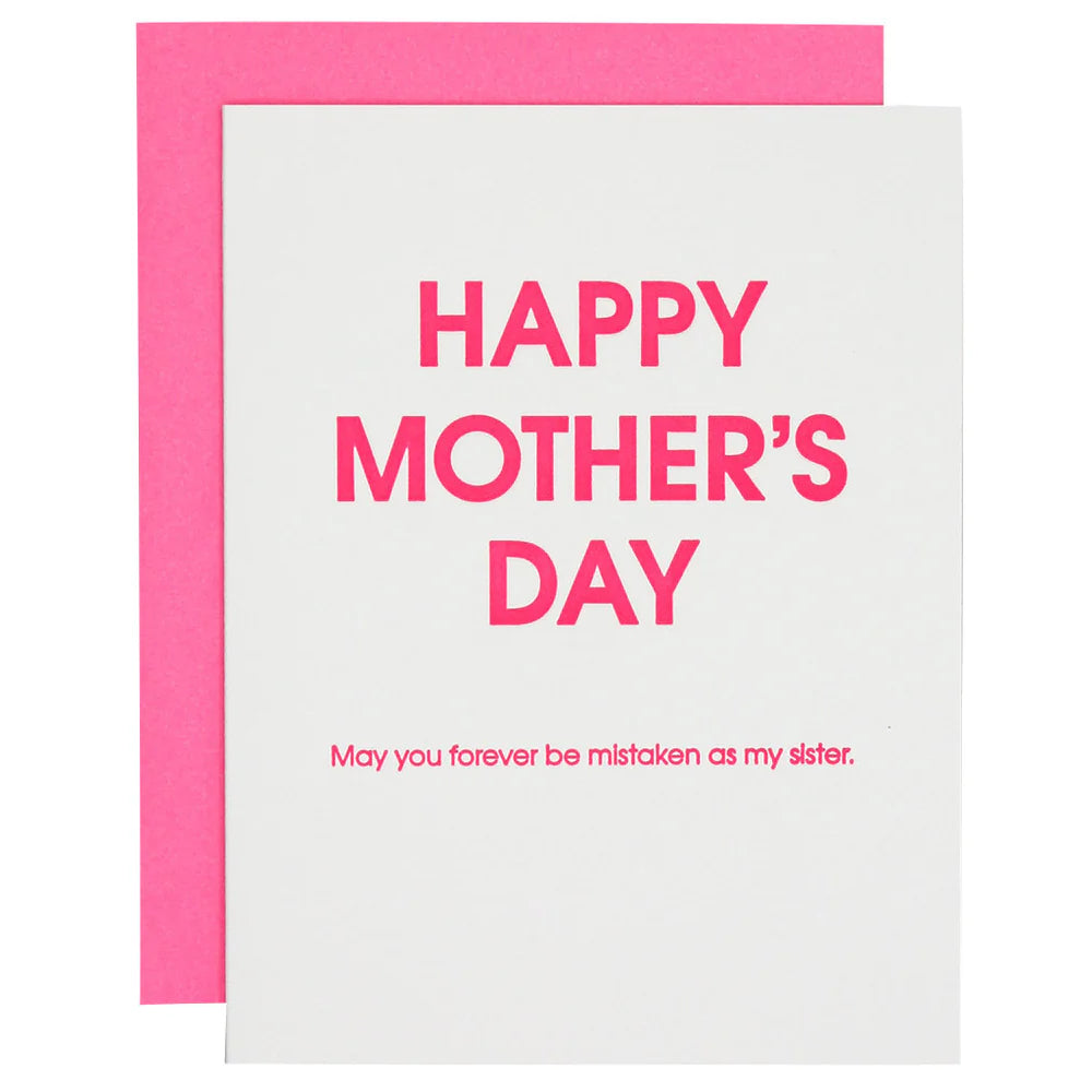 Our "Happy Mother's Day Mistaken As My Sister" card is letterpress printed on a vintage printing press in sunny California.