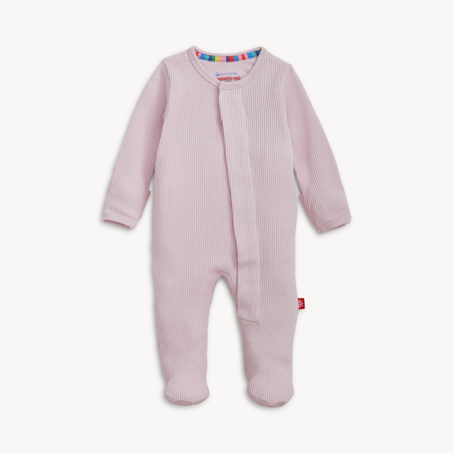 Our waffle modal Magnetic Footie, also known as a sleeper, is made with magnetic closures that are quick, quiet, and a lifesaver for middle-of-the-night changes. A delicate fabric, eco-friendly waffle modal is a modal-organic cotton blend with ample stretch + rich texture.