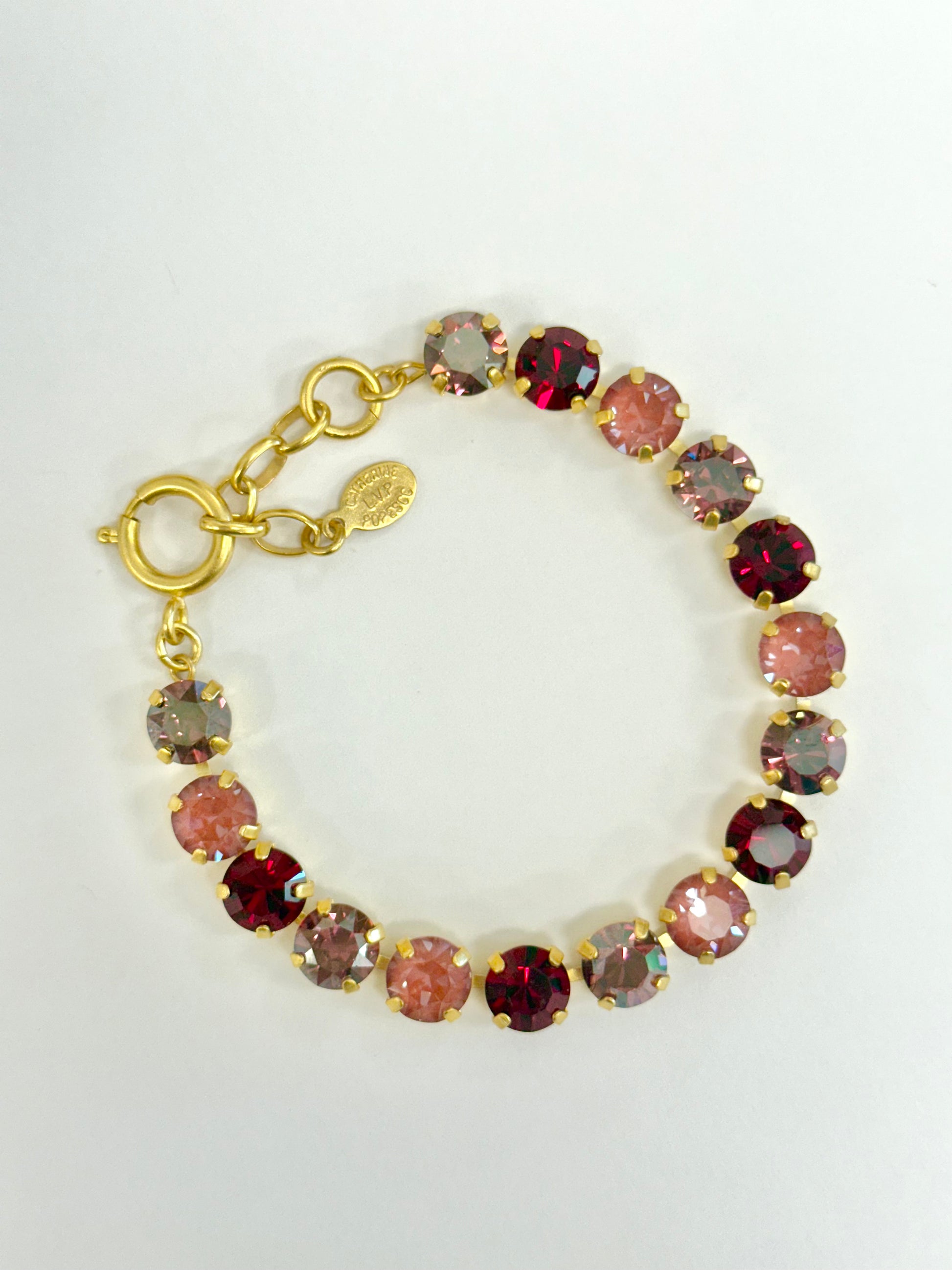 The cup-chain style gold crystal bracelet, but with a multicolor twist! An all-time classic featuring color schemes of linen, rose, & sky colored crystals!