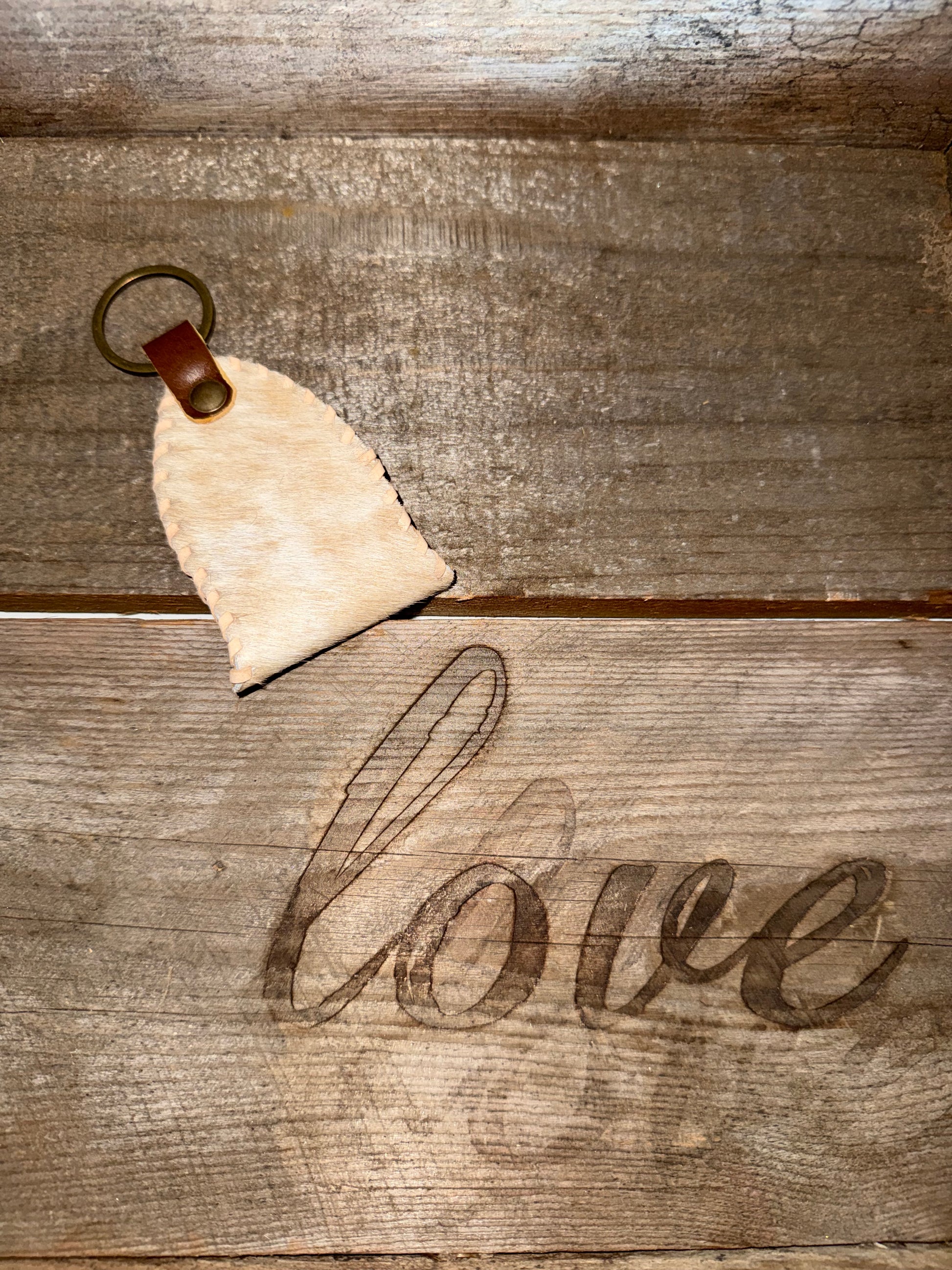 Artisan handmade keyring in genuine leather without signature whipstitch. Keep your keys handy at your side.