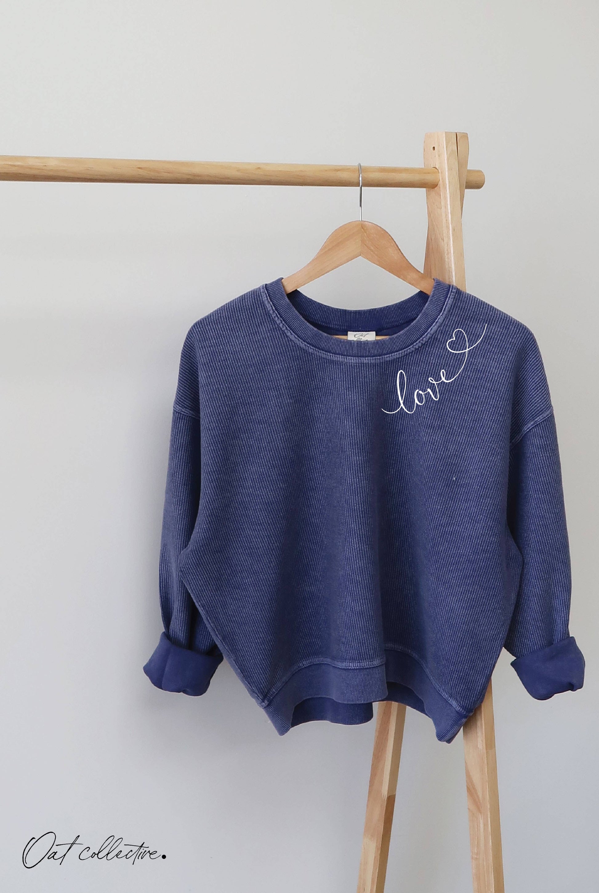 LOVE HEART NECKLINE Cropped Thermal Vintage Pullover Oversized sweatshirt with a super soft, vintage wash corded fabric.