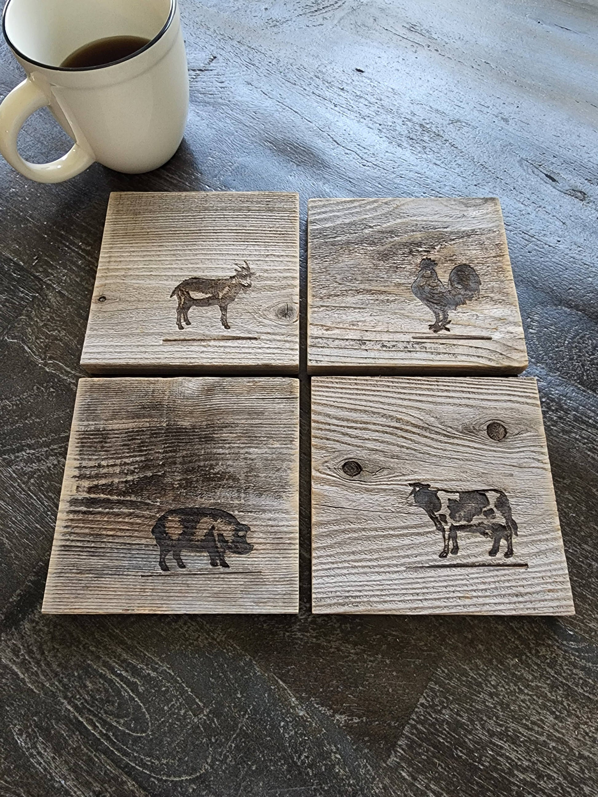 Reclaimed Wood Coasters (Set of 4) - Farm Animals